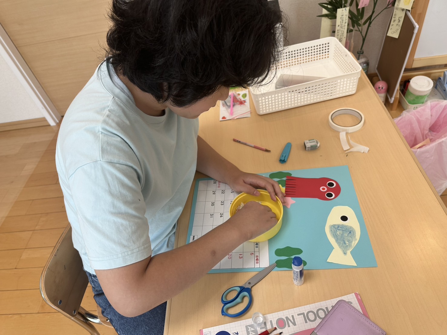 活動の合間に水分補給やトイレに行く休憩時間を作り、活動ごとに集中して取り組めるようにしています。