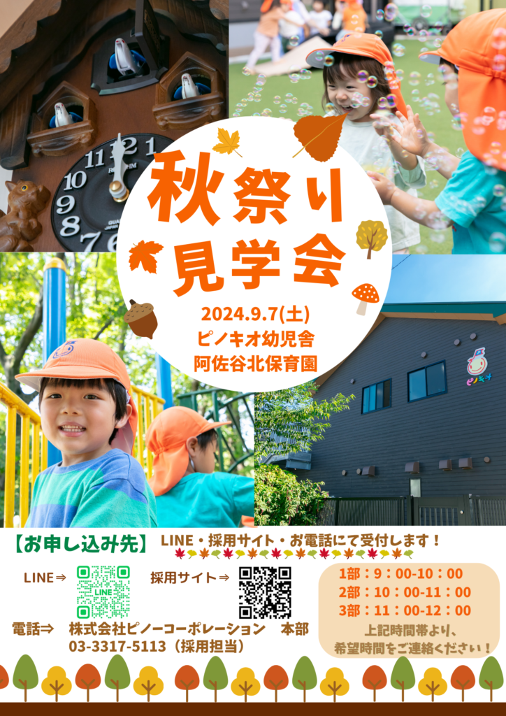 ピノキオ幼児舎阿佐谷北保育園にて、秋祭りの見学会を行います!