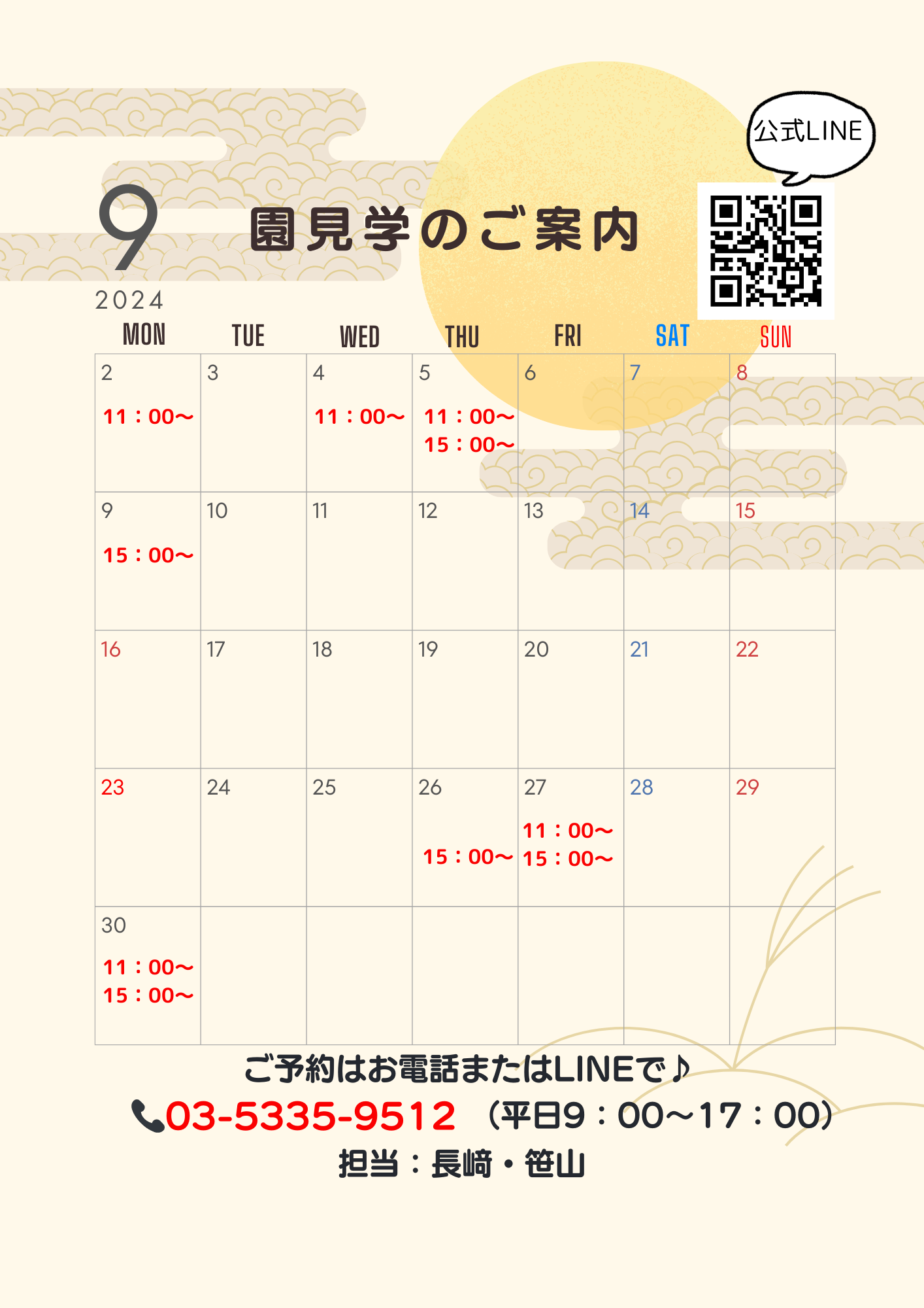 9月の園見学の日程が決まりました!