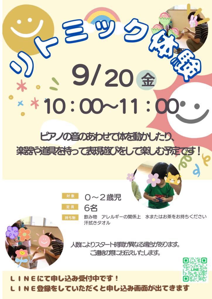 専門講師や保育者と一緒に音やリズムにのって心も身体もワクワク!!