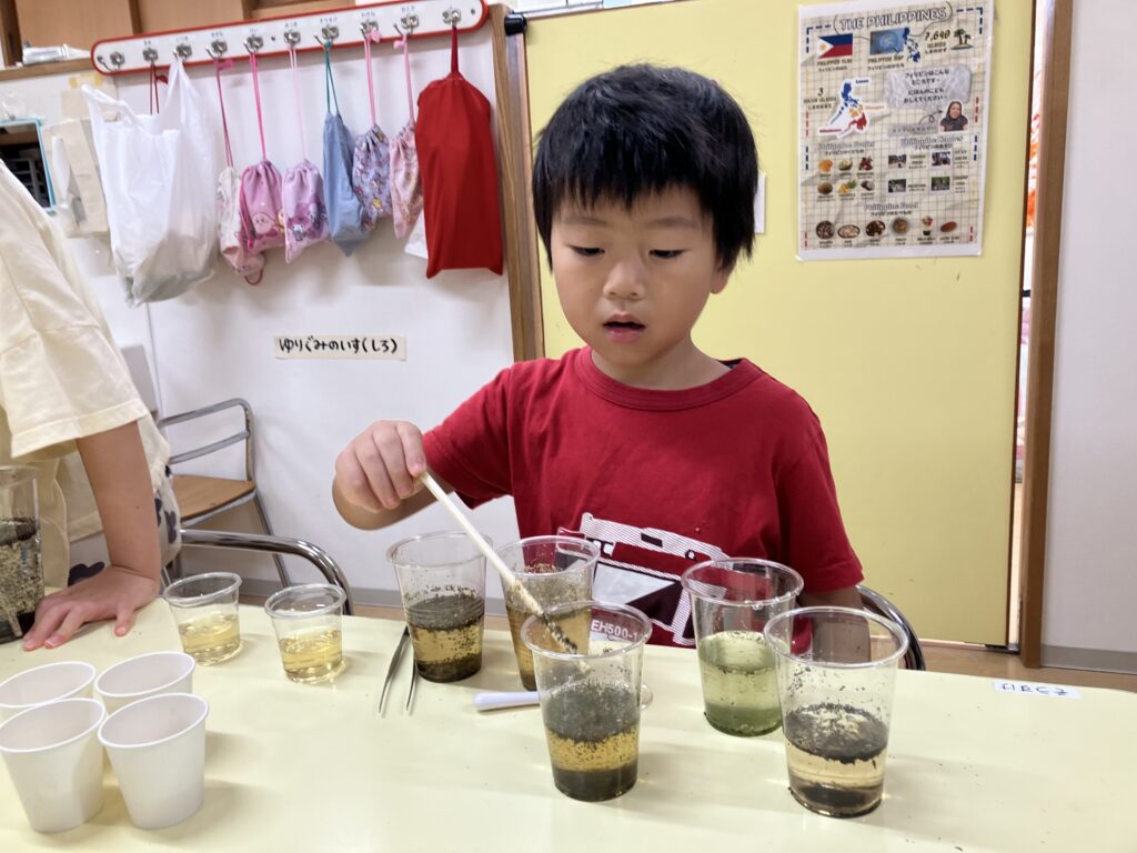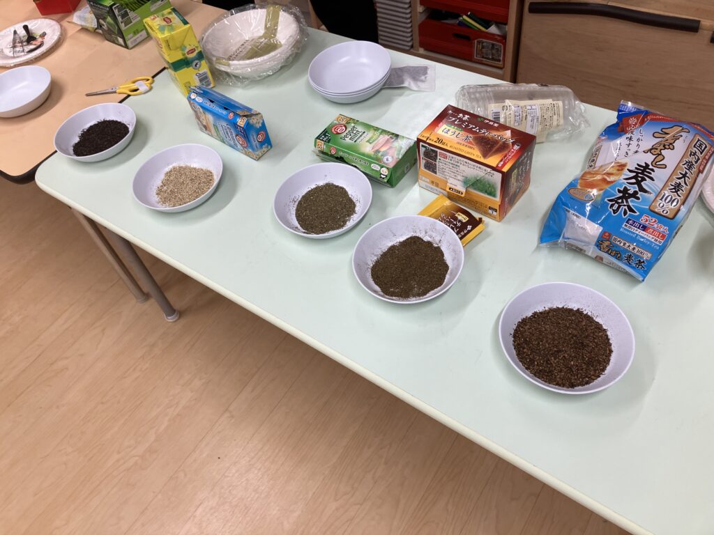 とうきょう すくわくプログラム初めてのテーマは「お茶」になりました。普段飲んでいる水筒の中のお茶と、保育園で飲んでいるお茶の色の違いに気が付き「どうしてだろう?」という声からテーマが決まりました。