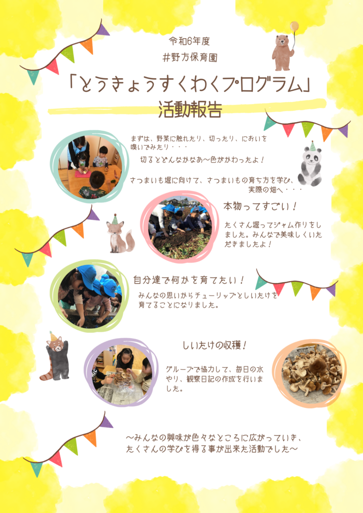 「とうきょうすくわくプログラム」活動報告#野方保育園