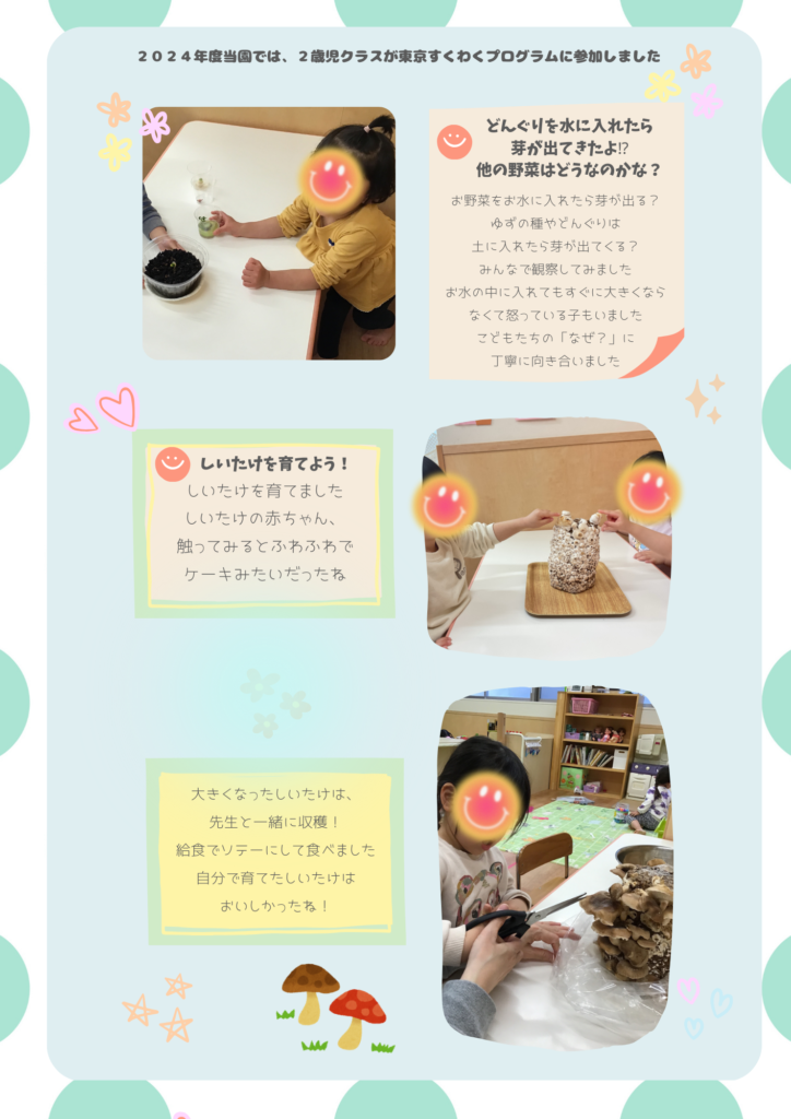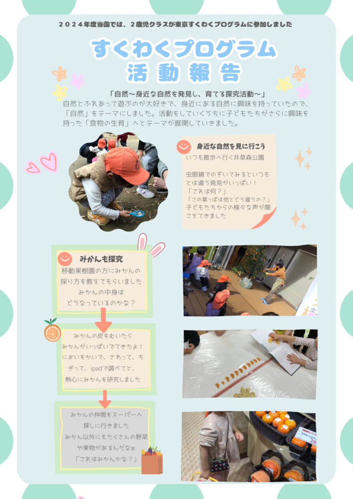 井草保育園 2025.03.26 とうきょうすくわくプログラム活動報告 #井草保育園 とうきょうすくわくプログラム 2024年度 2歳児クラスがとうきょうすくわくプログラム推進事業に参加しました 【井草】2024年度すくわく活動報告書ダウンロード
