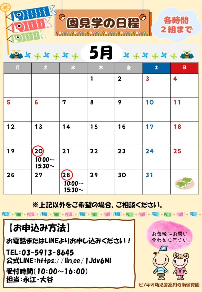 5月の園見学 日程のご案内 #高円寺南保育園