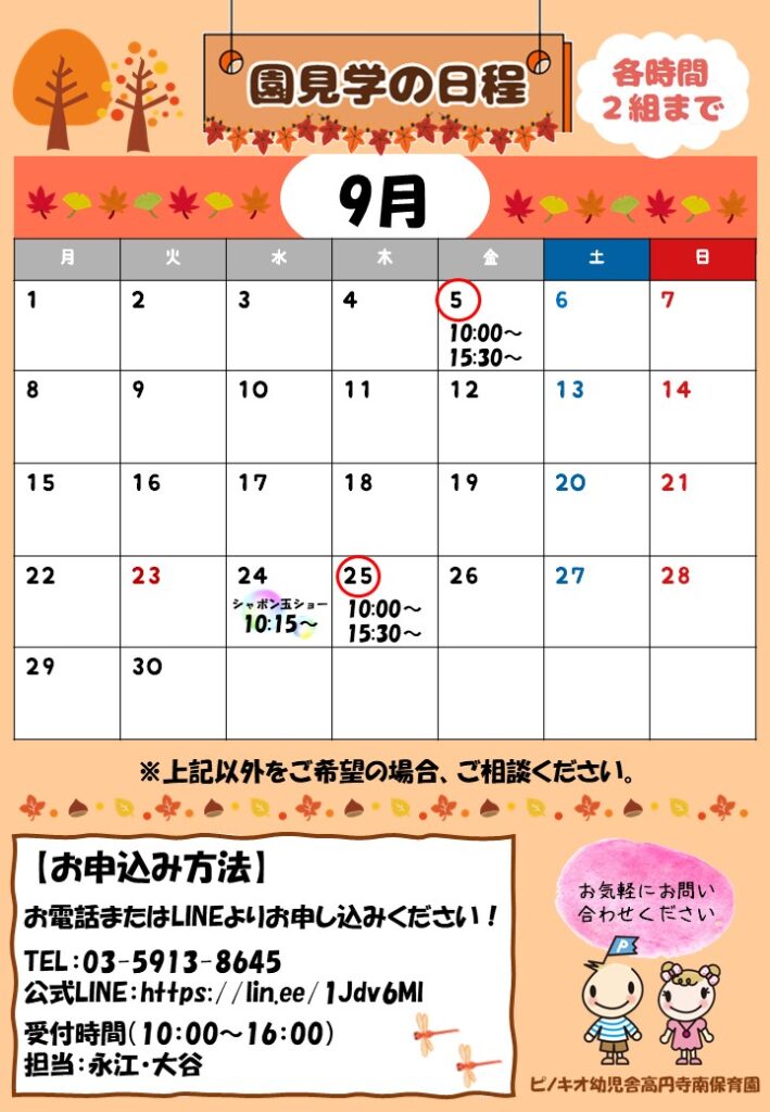 9/5(金)10:00~(受付終了)/15:30~(受付終了)