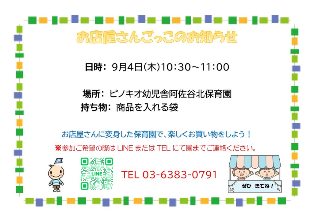 お店屋さんごっこのおしらせ