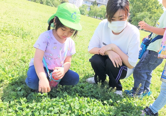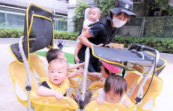 近隣の公園で遊んでいます。天候や子ども達の体調を踏まえながら、ほぼ毎日、お散歩にでかけています。