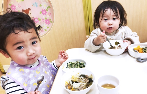 対応しています。園内で調理を行っていますので、除去食や代替食など、医師の診断をもとに保護者と確認の上、ご提供しています。