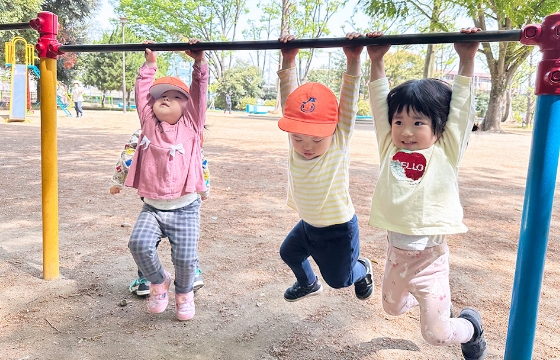 お天気の良い日は公園にお出かけします。様々な経験を楽しみます。