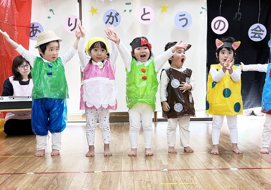 0歳児クラス 1歳児クラス 2歳児クラス 定員 9名 9名 9名 ※2025年5月現在