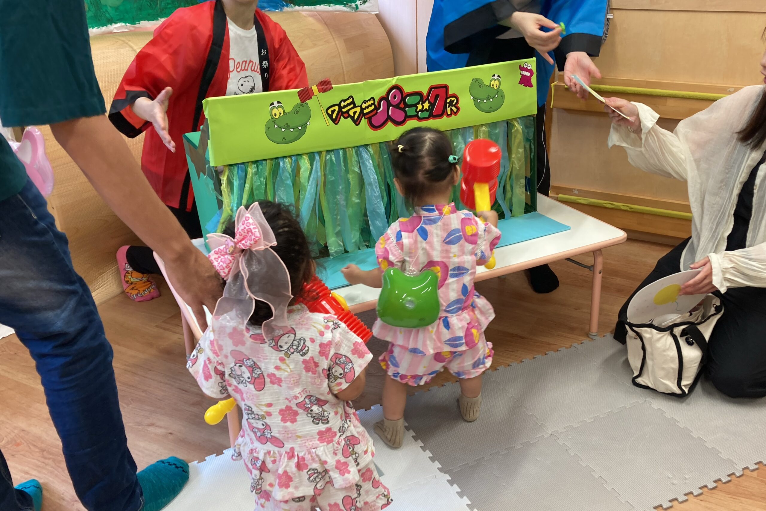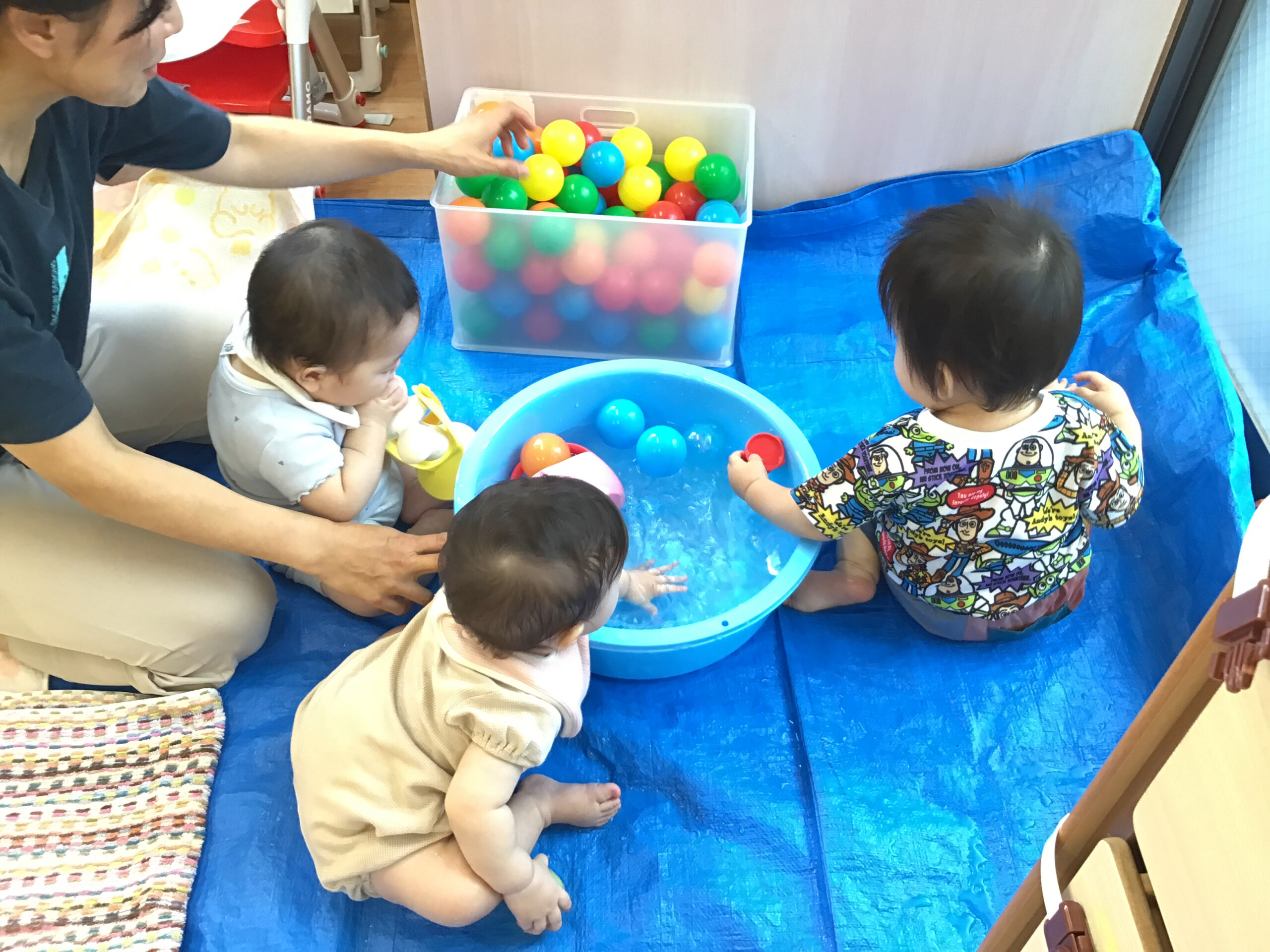 • プール遊びは行っておりません。室内にてビニールプールに少量の水を入れて氷に触れてみたり、水風船を使ったりと夏ならではの遊びをしています。