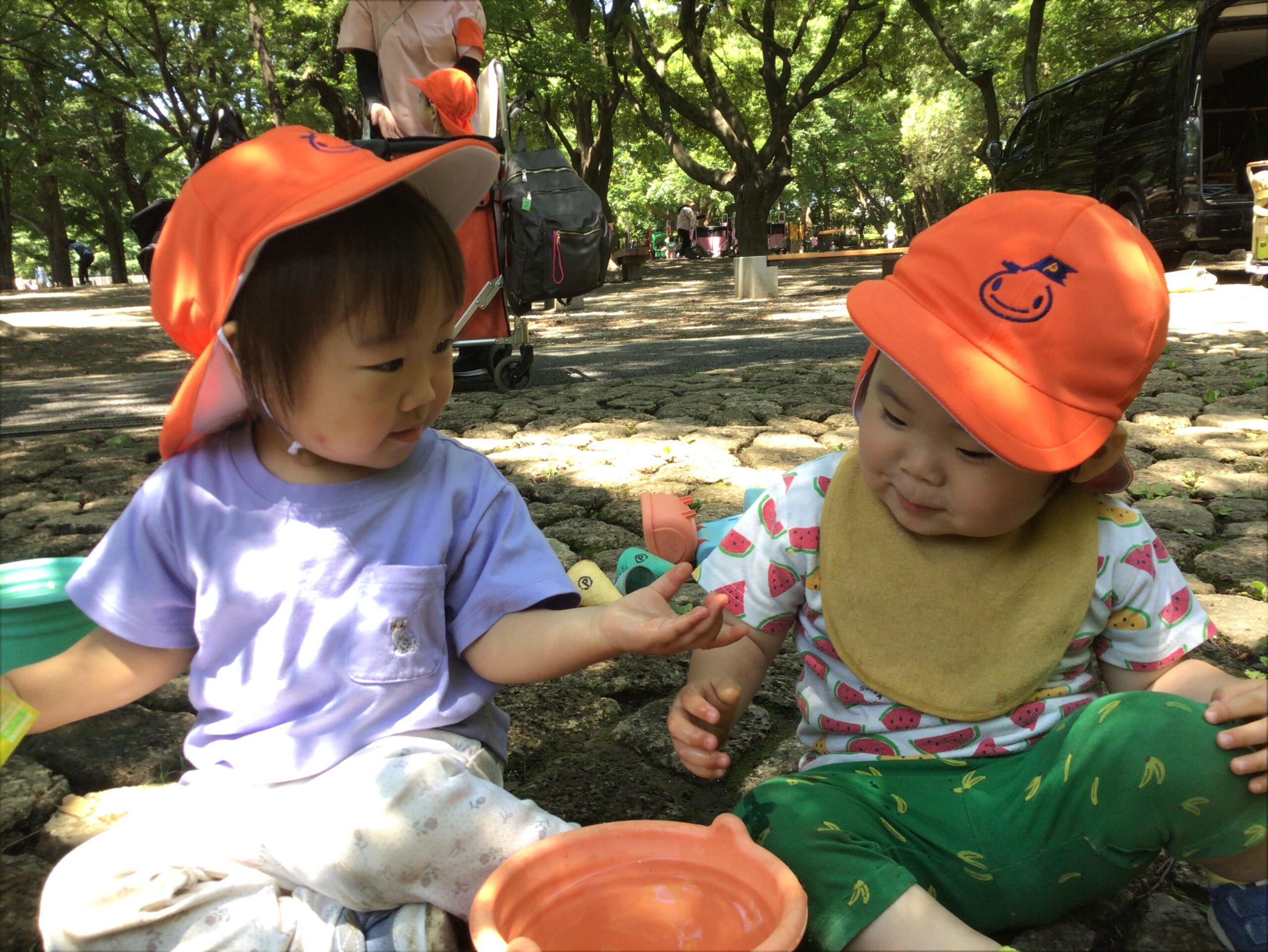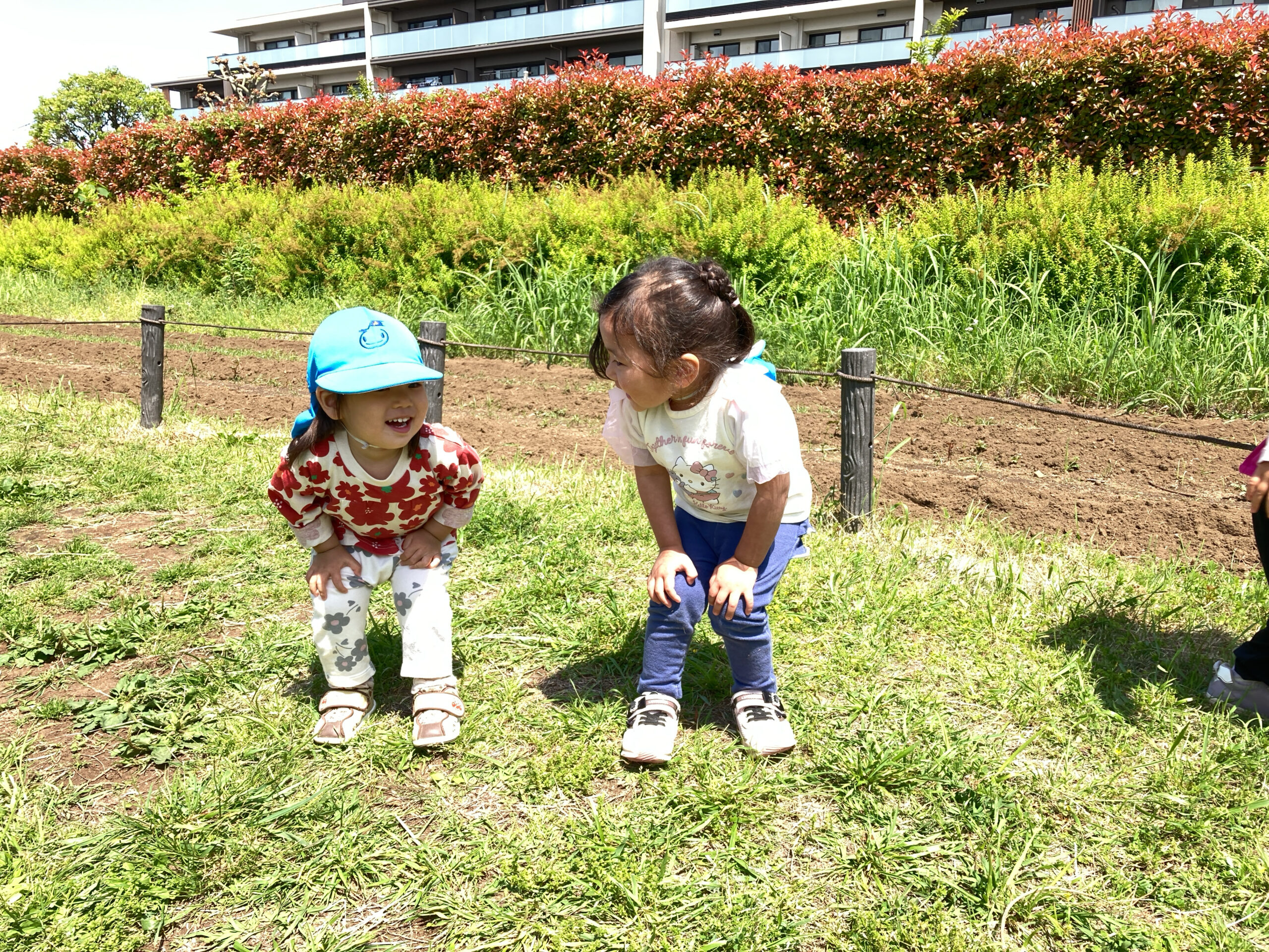 園庭はありませんが、近くには井草森公園など様々な公園があり、日々自然なものに触れ、見て、感じ、のびのびと身体を動かし遊んでいます