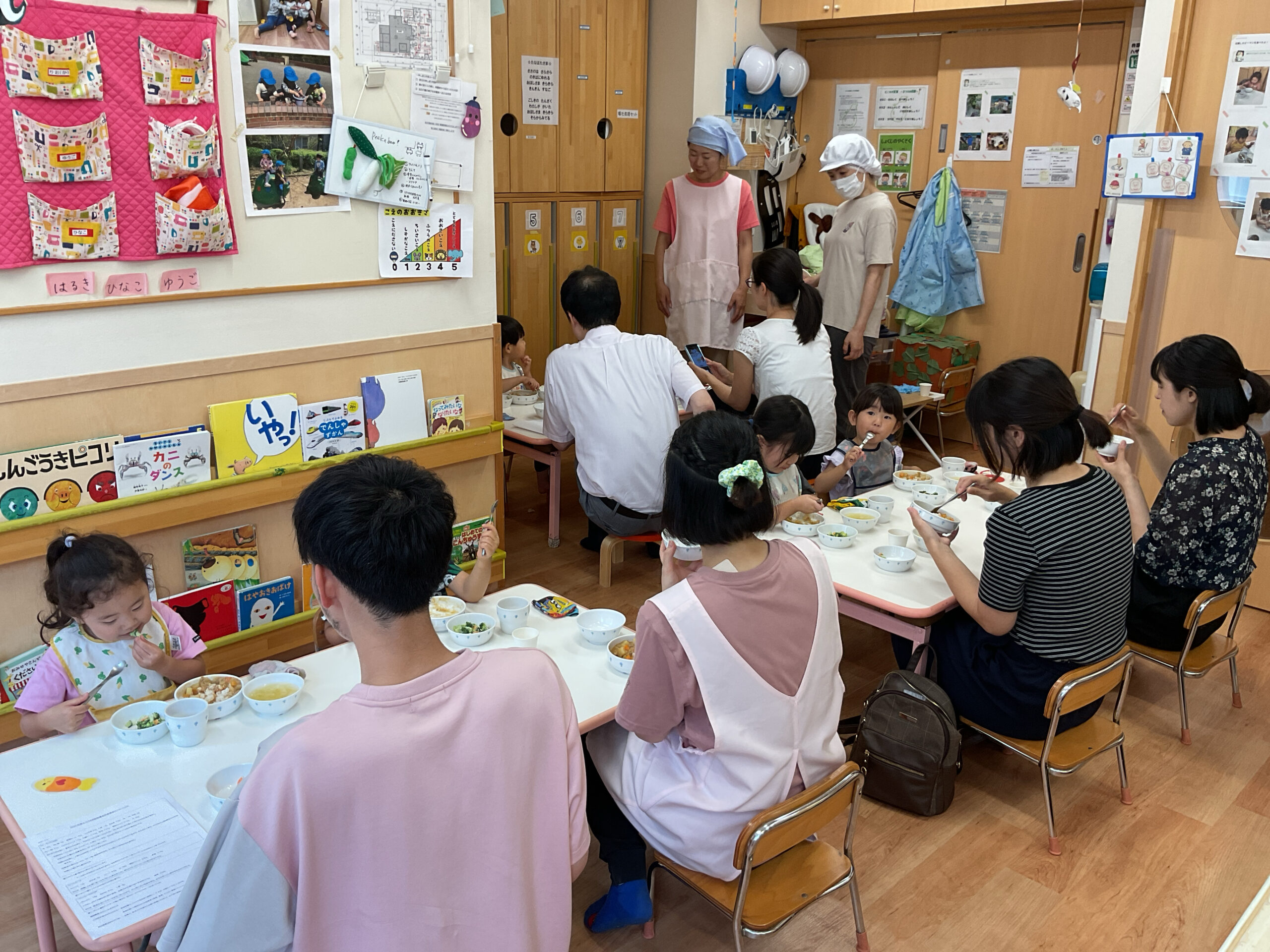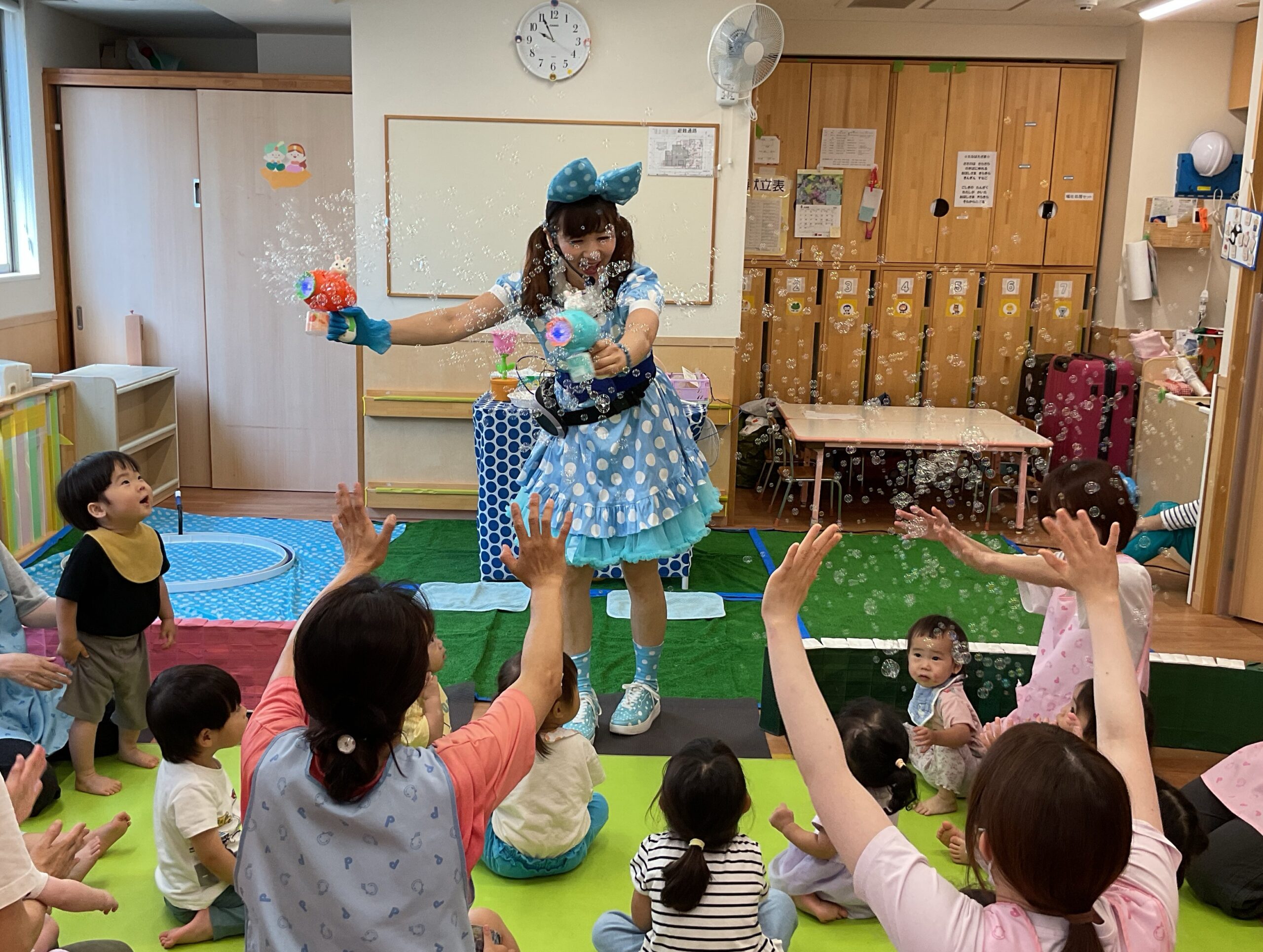 おやつの試食会・在園児との交流を含めた戸外活動・リトミック・シャボン玉ショーなどを開催し、様々な年齢のお子様・保護者様との交流を行っています。