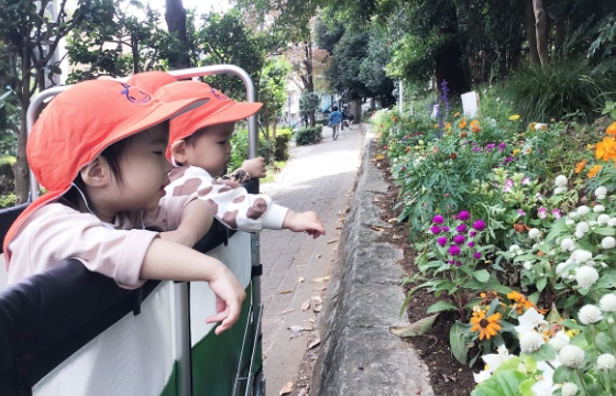 雨の日以外は近隣の公園へ出掛け、草花や虫の観察などを通して自然と触れ合います。その他、杉並区の農園をお借りしていも掘りへ出掛けます。