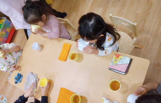 手作りのおやつをみんなで仲良くいただきます。お誕生日会などの特別メニューもあります。