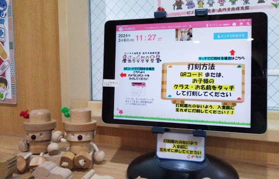 園に設置しているタブレット等を使って、スムーズに登降園の記録ができます。簡単操作で、送迎時の混雑も解消されます。