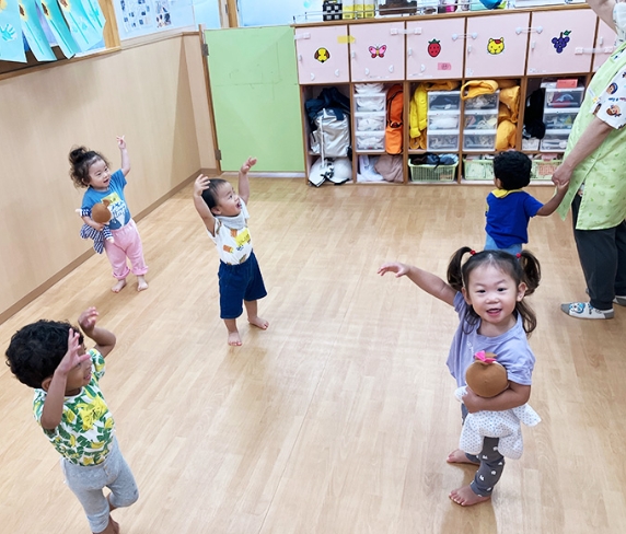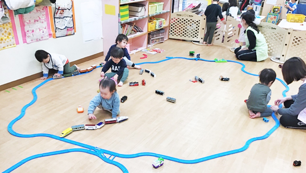 お迎えの時間まで合同保育で過ごします。クラスとはまた違っていろんなお友だちと過ごします。