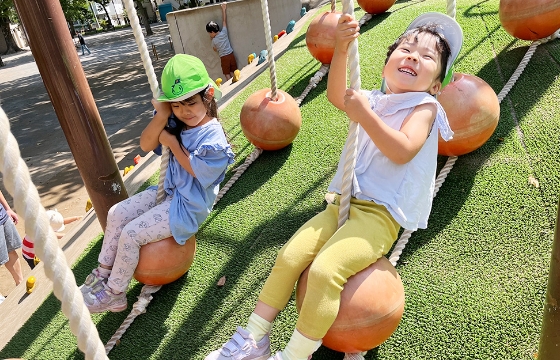 近くの公園は他の保育園と一緒になることが多いので、少し遠いのですが「四季の森公園」や「平和の森」に行きます。