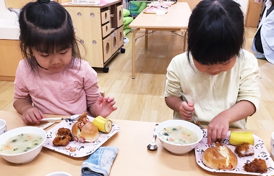 お隣のクラスのお友だちと一緒に楽しい給食。