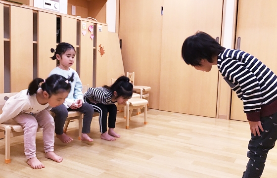 3歳さんからお当番活動。朝の会もお当番さんのお仕事です。