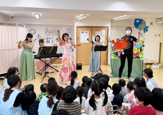 四季を通して草花・木の実・昆虫などの自然に触れたり、野菜の栽培・収穫を行っています。人形劇やプロの音楽奏者によるコンサートなど本物の芸術に触れる体験も。