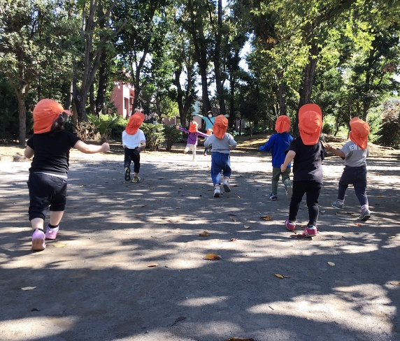 • 園庭の代わりとしてテラスがあり、夏はプールや水遊びを行います。よく行く公園は、東山公園、徳殿公園、丸山公園、野方第一公園です。