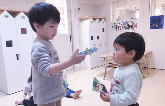 登園後、荷物をお片付けしたら朝の自由時間のはじまり。