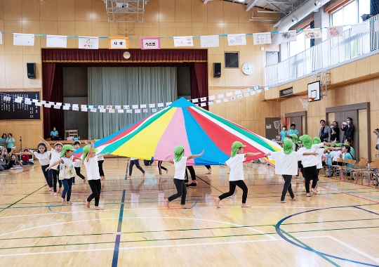 バランスを取ることから始めて、どうやって体をコントロールするのか、マット遊び、大縄など色々な活動を通し、体の使い方を身につけていきます。