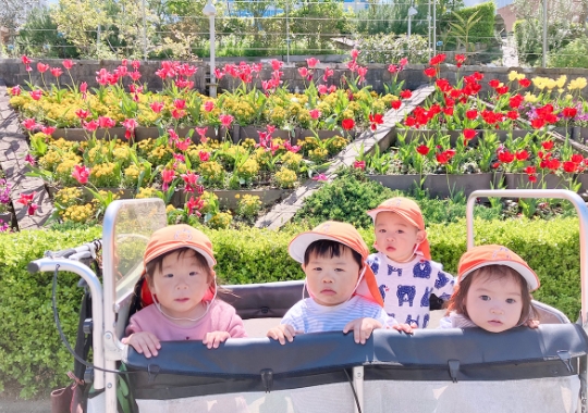 2歳児を中心に行う栽培活動ですが、0~1歳児も観察や水やり、触れる等の体験をしています。植物の成長を間近で見て「大きくなった!」と発見を楽しんでいます。